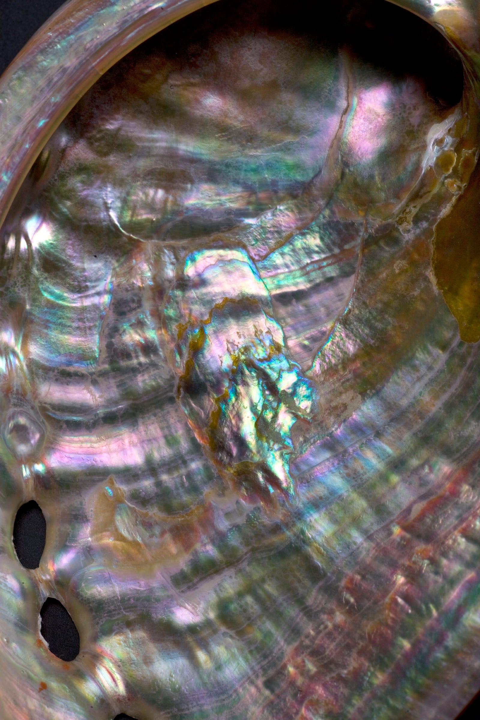 No fundo do mar, algo semelhante acontece. Um molusco sente um incômodo. Pode ser um grão de areia, uma partícula estranha ou até um parasita que entra em sua concha. Isso fere um pouco, desequilibra o organismo. E o que a natureza faz? Pérola. O molusco simplesmente reage. Camada após camada, ele vai encapando aquele corpo estranho com nácar, uma substância brilhante e resistente que também reveste o interior da concha. O nácar é composto por finas lâminas de cristais de aragonita, entrelaçadas com proteínas orgânicas que atuam como cola e proteção. Essa combinação, minuciosamente organizada pela natureza, cria um material até 3.000 vezes mais resistente do que a aragonita pura. Assim, a defesa se transforma em jóia. Ela é orgânica e viva na origem, não precisa de corte ou lapidação, pois já nasce com sua beleza. É produzida como resposta a um trauma, uma defesa natural do corpo que a criou. E no caso da madrepérola, ela faz algo ainda mais colorido. A partir do desequilíbrio, do objeto invasor, o molusco vai revestindo seu interior com uma camada protetora, iridescente, luminosa, viva.
